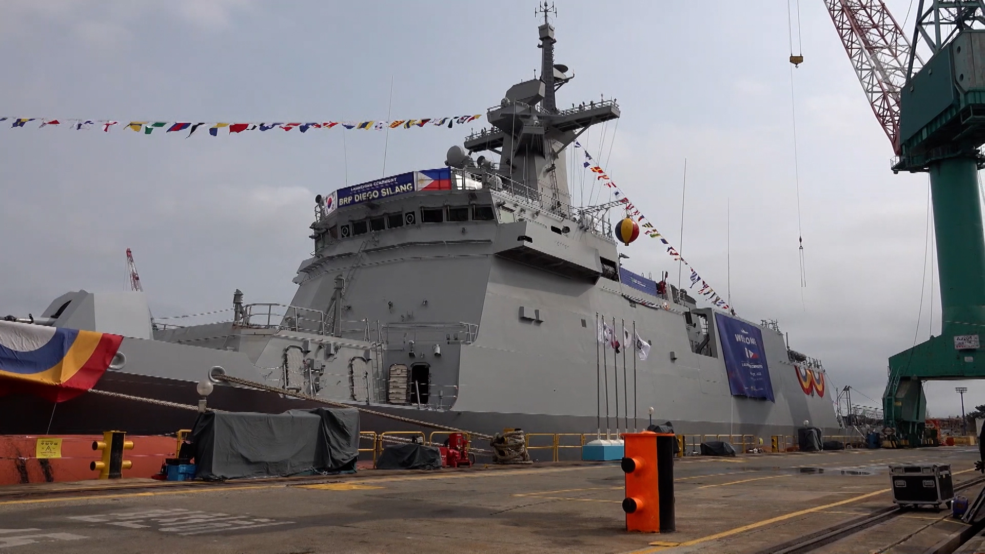 HD현대중공업이 오늘(3/27) 3천200톤급 필리핀 초계함 2번함인 '디에고 실랑(Diego Silang)함' 진수식을 가졌습니다.