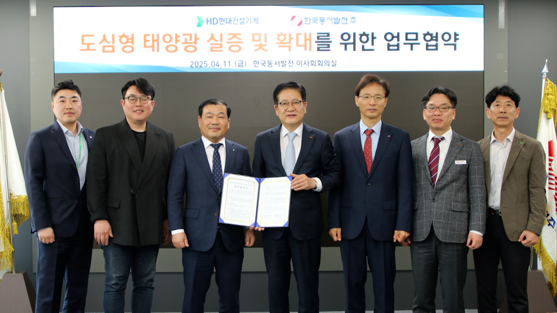 한국동서발전과 HD현대건설기계가 건물 외장형 태양광 실증을 위한 업무협약을 체결했습니다.