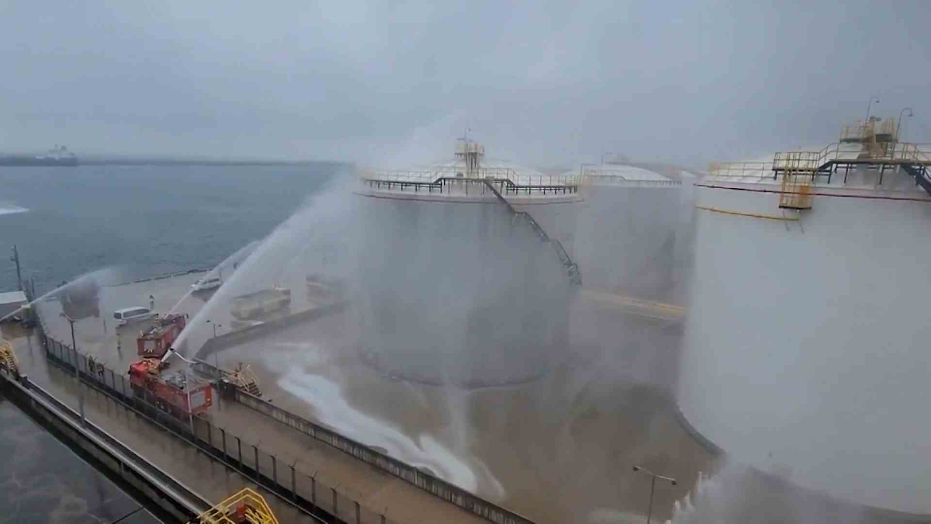 해경은 탱크 폭발로 발생하는 유해화학물질 탐지와 화재 확산 방지를 위한 냉각 작업 등 대응 체계를 점검했습니다.