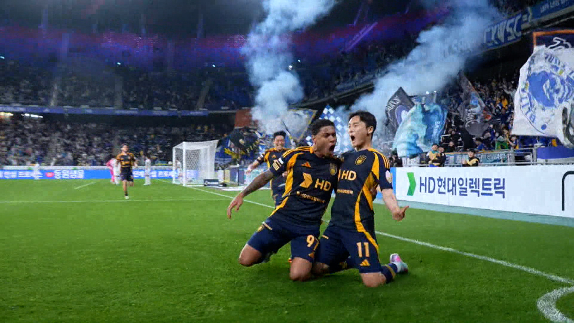 프로축구 울산HD가 어제(5/24) 열린 김천과의 경기에서 경기 막판 터진 엄원상의 역전골에 힘입어 3 대 2 승리를 거두며 리그 3위 자리를 지켰습니다.