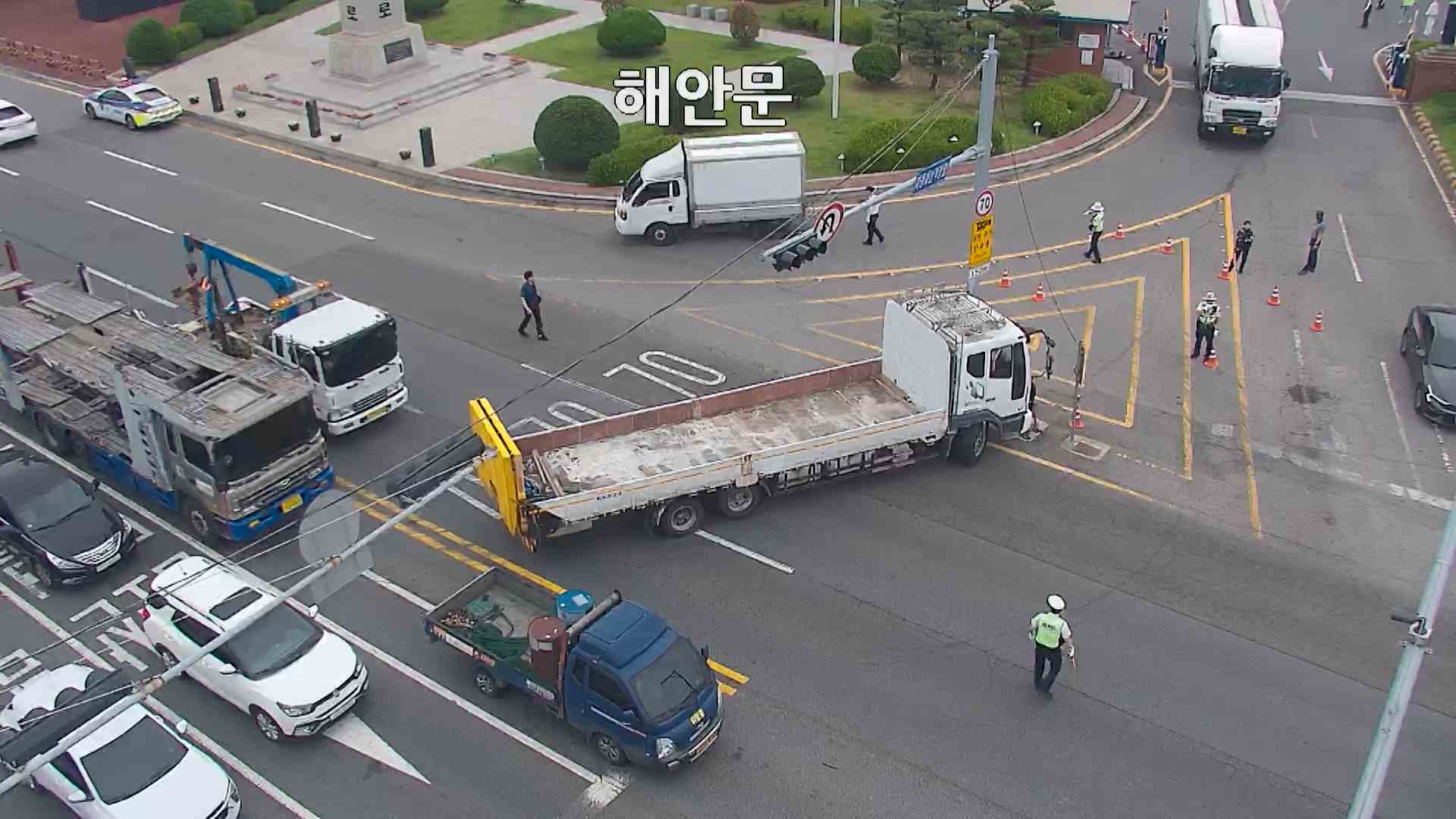 오늘(6/24) 오전 8시 5분쯤 북구 염포동 아산로에서 화물차가 신호등을 들이받는 사고가 발생했습니다.