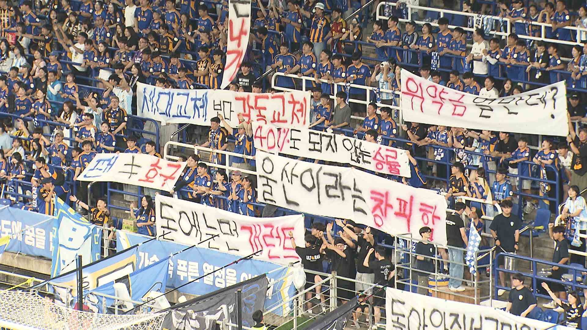 울산 팬들은 김판곤 감독 퇴진을 요구하며 지난 13일 서울과의 원정 경기에서도 1천여 명이 응원을 하지 않고 경기를 지켜봤습니다.