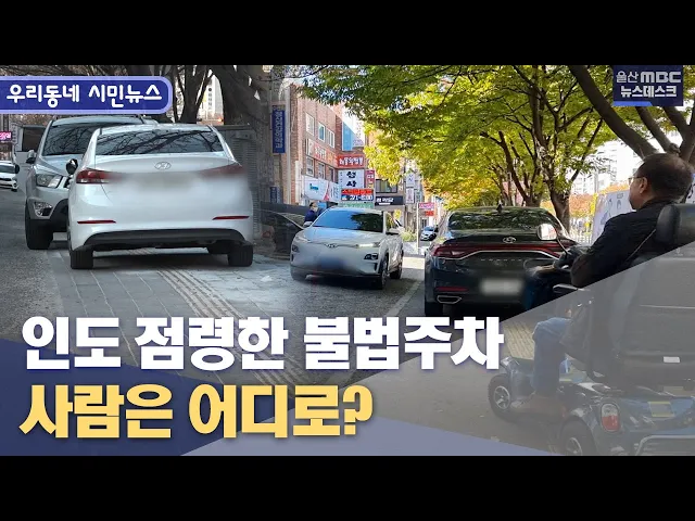 [앵커] 울산 시민이 직접 만드는 울산MBC 우리동네 시민뉴스 입니다. 불법 주차들이 인도 위를 점령하고 있어 시민들이 불편을 호소하고 있습니다. 김인택 시민기자가 취재했습니다. [리포트] 울산 남구 수암시장 근처의 상가건물들 앞입니다. 사람들이 걸어 다니는 인도 위를 불법주차 차량들이 점령하고 있습니다. 시각장...