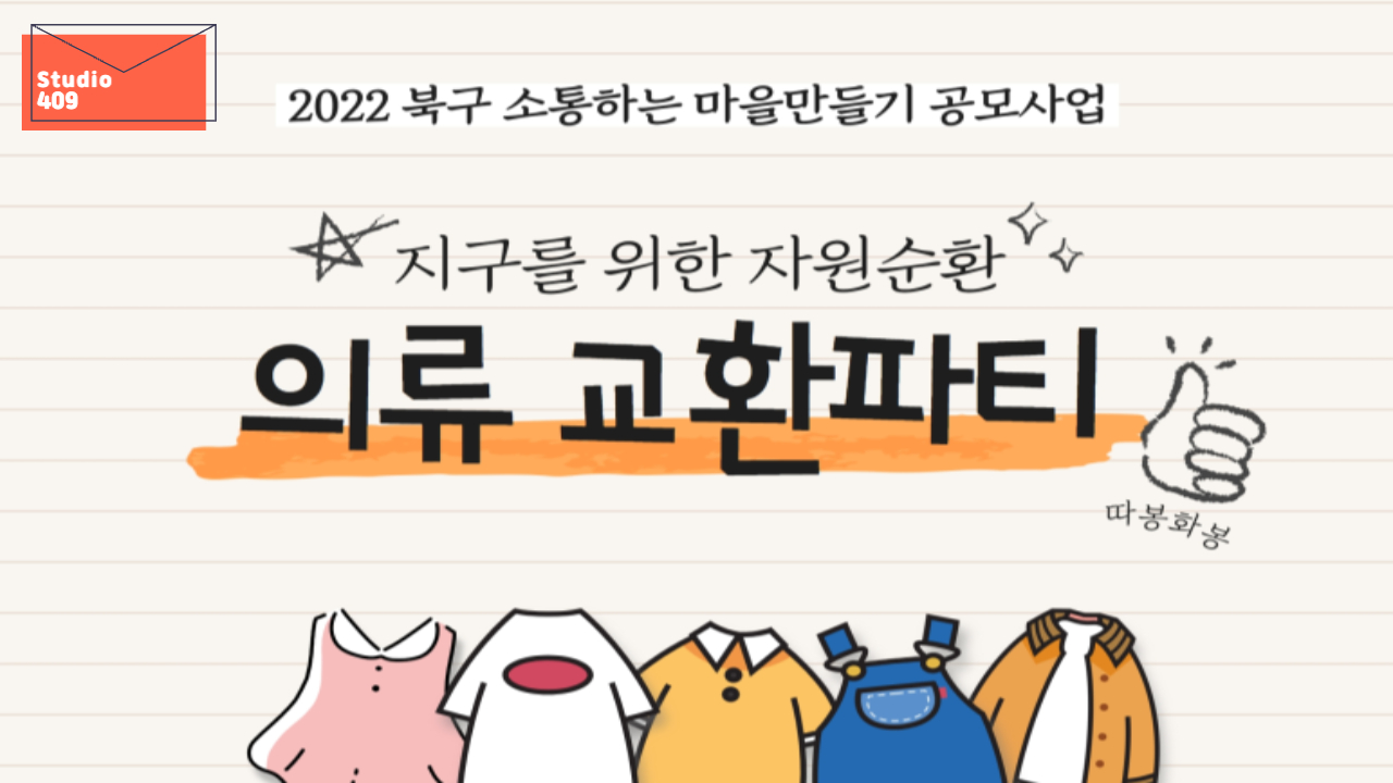 스튜디오409 뉴스레터 /옷장 속 잠자는 옷들!파티 초대합니다👕👖😮여러분들은 옷 쇼핑 좋아하시나요? 저도 종종 쇼핑🛍을 즐겼는데요. 그런데 우리가 쉽게 구매해서 입는 옷이 환경에 큰 부담을 주고 있다고 해요. 최근 패스트 패션이 유행하면서 이런 문제가 더 심각해졌다고 해요.(패스트 패션: 저렴한 가격에 빠르게 변...