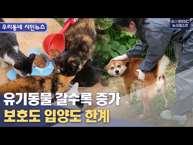 [앵커] 이렇게 매년 휴가철이면 집에서 키우던 동물을 그냥 버리는 사람들이 많은데요, 울산도 유기동물 문제가 갈수록 심각해지고 있지만 버려진 동물을 돌보고 새 가정으로 입양보낼 시설은 턱없이 부족하다고 합니다. 김혜경 시민기자가 취재했습니다. [리포트] 기자 저는 집에서 키우다 버려져 갈 곳 없는 동물들이 오...