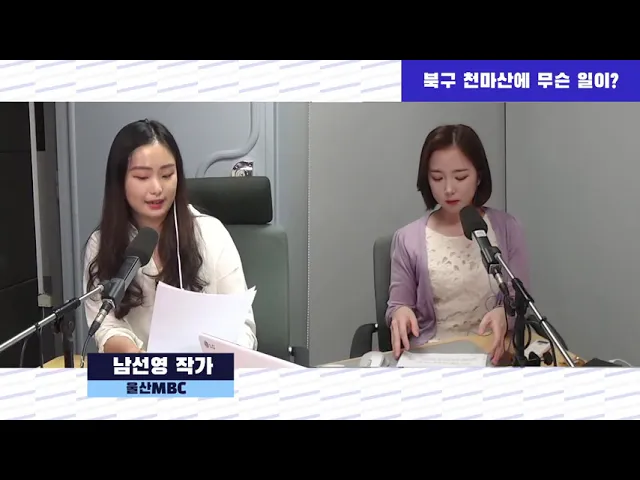 주민들, 어느날 갑자기 등산로가 사라졌다? 민간사업자, 절차상 하자 없다. 환경단체, 최소한의 환경권과 건강권 지켜져야 방송 : 울산MBC 라디오 김연경의 퇴근길 톡톡 표준FM 97.5(18:10~19:00) 진행 : 김연경 앵커 대담 : 남선영 울산MBC 편성제작국 작가 날짜 : 210610◇ 김연경 울산 북구에 위치한 천마산, 다들 한 번...