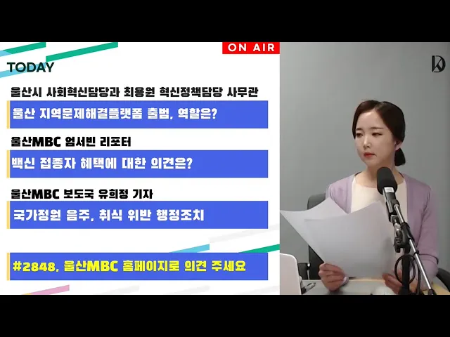 방송 : 울산MBC 라디오 김연경의 퇴근길 톡톡 표준FM 97.5(18:10~19:00) 진행 : 김연경 앵커 대담 : 울산시 사회혁신담당과 최용원 사무관 날짜 : 210609오늘 울산에서 ‘지역문제 해결 플랫폼’ 출범식 및 협약식이 열렸습니다. 자 이게 뭔지 궁금하시죠, 저 역시도 그런데요 울산광역시 사회혁신 담당관 연결해서 자세하게 ...