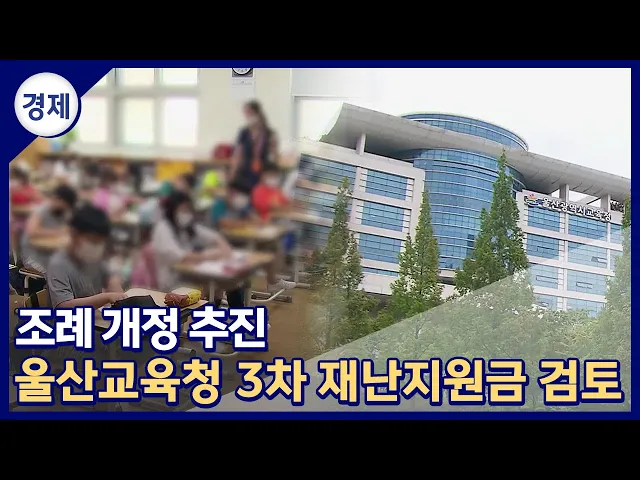 ◀ANC▶울주군이 2차 재난지원금 지급에 들어간데 이어 울산시교육청도 3차 재난지원금을 지급할지를 놓고 검토에 들어갔습니다. 이에 따라 지원금 지급 근거가 되는 관련 조례 개정도 추진되고 있습니다. 유영재 기자 ◀END▶ ◀VCR▶울산시의회에 상정된 교육재난지원금 지원 조례 일부 개정 조례안입니다. 기존 관련...