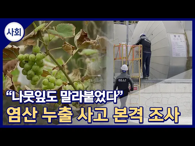 ◀ANC▶지난 17일 온산산단 비봉케미칼에서 발생한염산 누출사고 조사가 본격 시작됐습니다.사고 발생 지점 주변 작물들은 말라붙었고마을 주민들은 호흡곤란을 호소하며병원치료를 받았는데요.환경단체들은 이번에 국가산단 전체를 대상으로정밀안전진단을 벌이자며 목소리를 높였습니다.이용주 기자. ◀END▶ ◀VCR▶...