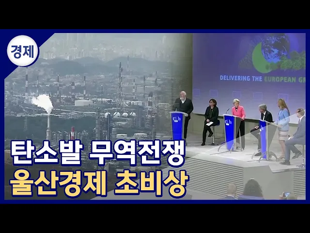 ◀ANC▶유럽연합이 탄소국경세를 도입하는 것을 골자로 한 초강력 무역정책에 합의하면서 울산 경제에도 비상이 걸렸습니다.이산화탄소 배출량이 많은 울산공단 기업들에겐발등의 불이 떨어진 셈인데요,탄소발 무역전쟁에서 살아남기 위한 대응 전략을 살펴보는 연속기획.오늘은 첫 순서로 울산의 대유럽 수출 비중과 경...