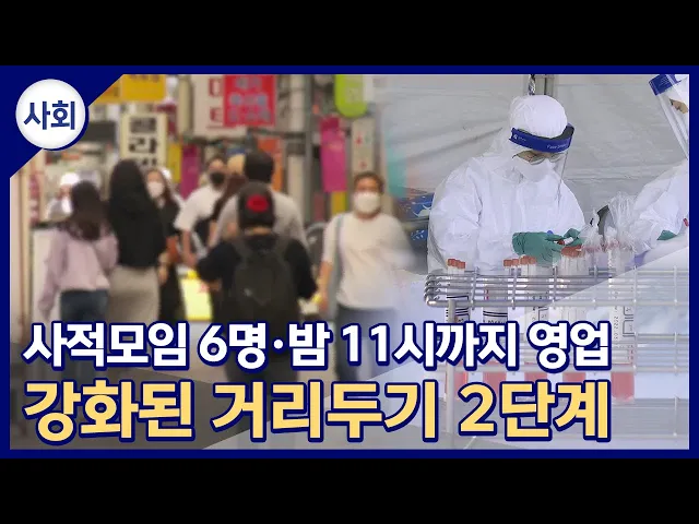 ◀ANC▶울산시가 내일부터(오늘부터) 2주 동안 강화된 사회적 거리두기 2단계를 시행합니다. 사적 모임은 6명까지만 허용되며, 카페와 식당 영업시간은 밤 11시까지로 현행보다 1시간 앞당겨집니다. 유영재 기자 ◀END▶ ◀VCR▶전국 코로나19 확진자가 연일 1천 명이 넘는 등 수도권을 중심으로 한 4차 대유행이 부산 ...