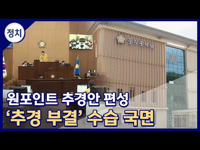 ◀ANC▶ 추경예산 부결로 물의를 빚은 울주군이 원포인트 추경예산안을 편성해 다시 군의회에 제출했습니다. 군수와 군의회 의장이 잇따라 사과 기자회견까지 열고 사태 수습에 나섰지만 갈등이 해소될 수 있을 지는 좀 더 지켜봐야 겠습니다.이상욱 기자. ◀VCR▶ 400억 원의 예산 증액을 골자로 한 울주군의 1차 추경예...