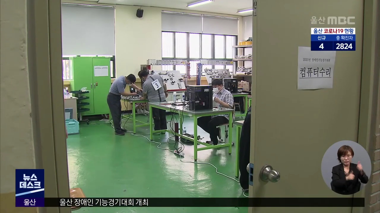 2021년 울산시 장애인 기능경기대회가 오늘(6/29) 열렸습니다. 이번 대회에는 컴퓨터 수리와 화훼 장식, 귀금속 공예 등 24개 직종에 142명이 출전해 기량을 겨룹니다. 종목별 입상자는 해당 직종의 기능사 실기시험이 면제되고, 1등 입상자는 오는 9월 열리는 전국 대회에 울산 대표선수로 참가할 수 있습니다.//