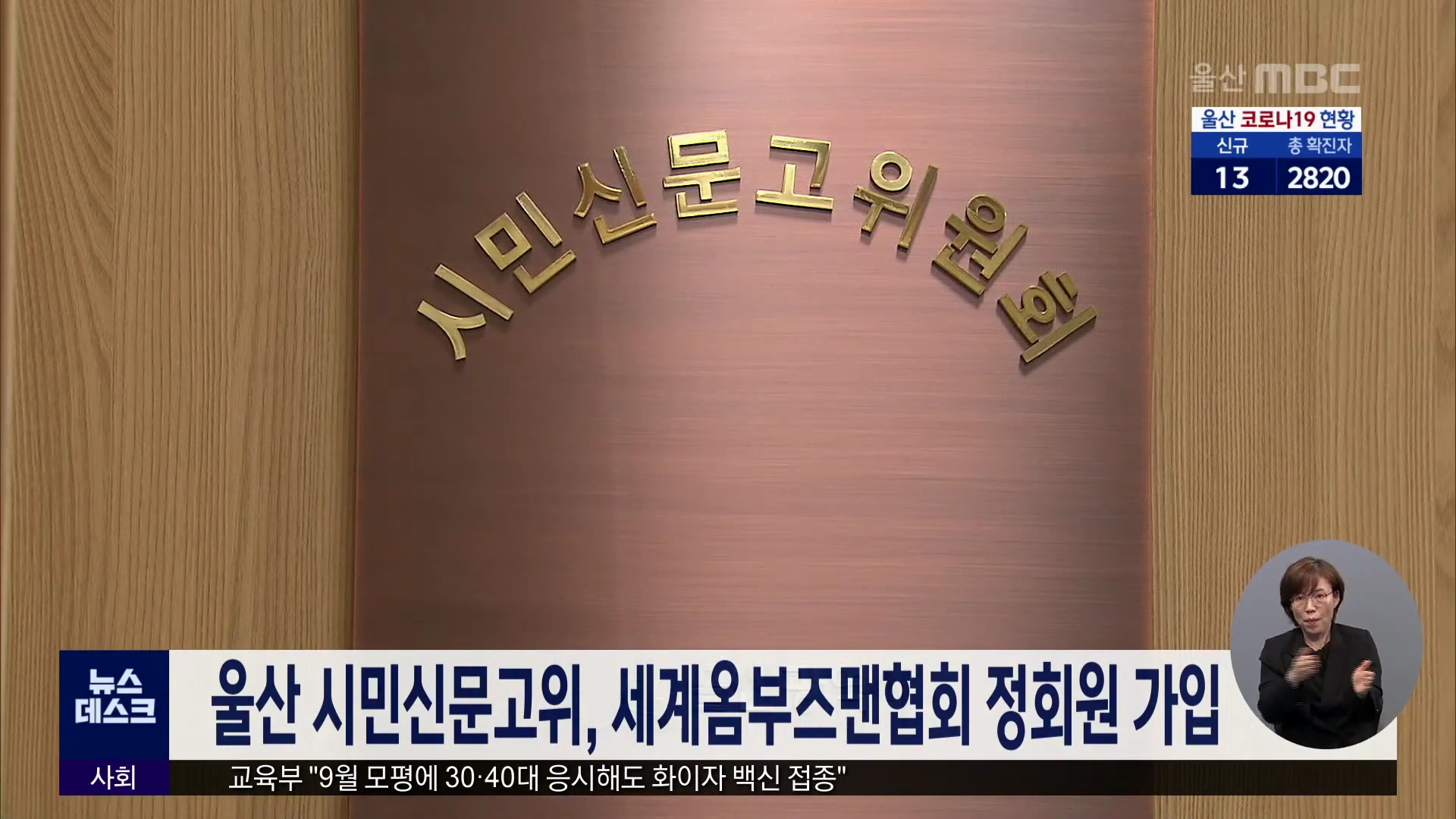 울산시 시민신문고위원회가 세계옴부즈맨협회 정회원으로 가입했습니다. 울산시는 시민신문고위원회가 독립적인 기관 운영과 관련 법률 등을 마련한 성과 등을 인정받아 정회원 자격을 승인받았다고 밝혔습니다. 울산의 세계옴부즈맨협회 정회원 가입은 정부의 국민권익위원회와 서울, 강원도에 이어 국내에서 네 번째입니...