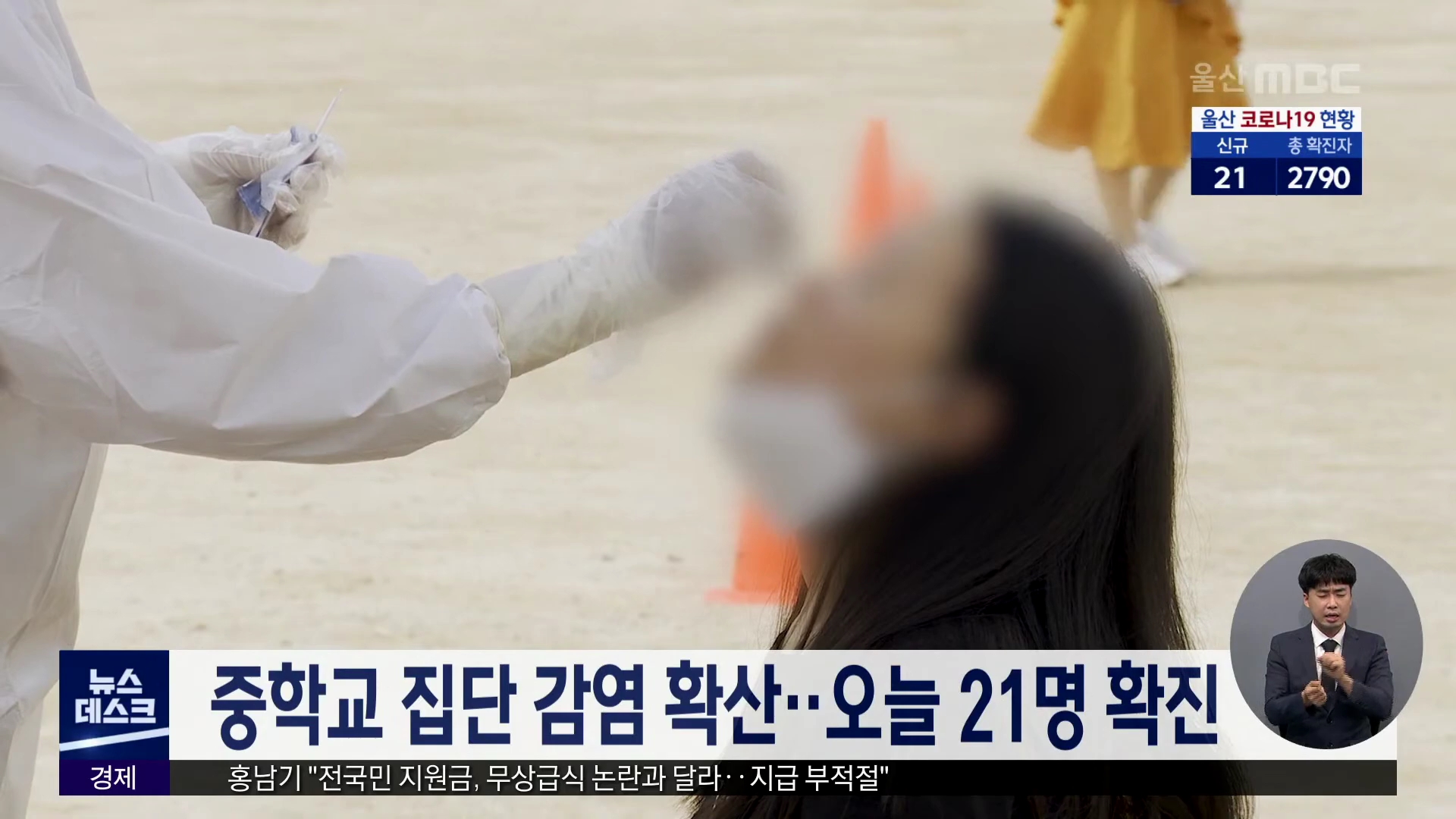 중구 무룡중학교 코로나 집단감염이 확산되고 있습니다. 오늘(6/25) 울산에서는 코로나 확진자 21명 가운데 10명은 무룡중학교 관련 확진자로 확인됐습니다. 또 남구 영상 제작업체 관련해 2명이 확진되는 등 코로나 연쇄감염이 잇따르고 있습니다. 울산시는 확진자들의 거주지에 대한 방역소독을 실시하고, 추가 동선과 접...