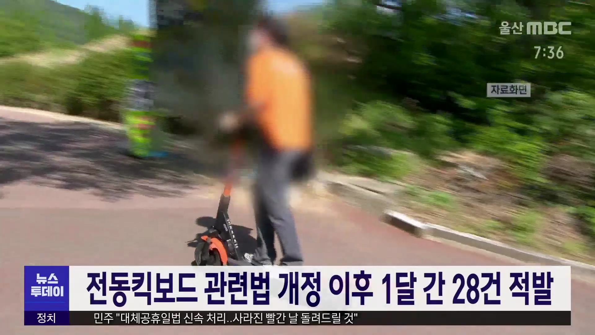 개인형이동장치 도로교통법 개정안 시행 한달이 지난 가운데 전동킥보드 관련 위반사례 28건이 적발됐습니다. 울산경찰청은 음주운전 8건, 무면허 9건, 인도주행 7건, 기타 4건 등 총 28건을 적발해 과태료를 부과했다고 밝혔습니다. 경찰은 도로교통법 개정안 안내기간이 지난 12일 종료됨에 따라 앞으로는 무면허·노헬멧 ...
