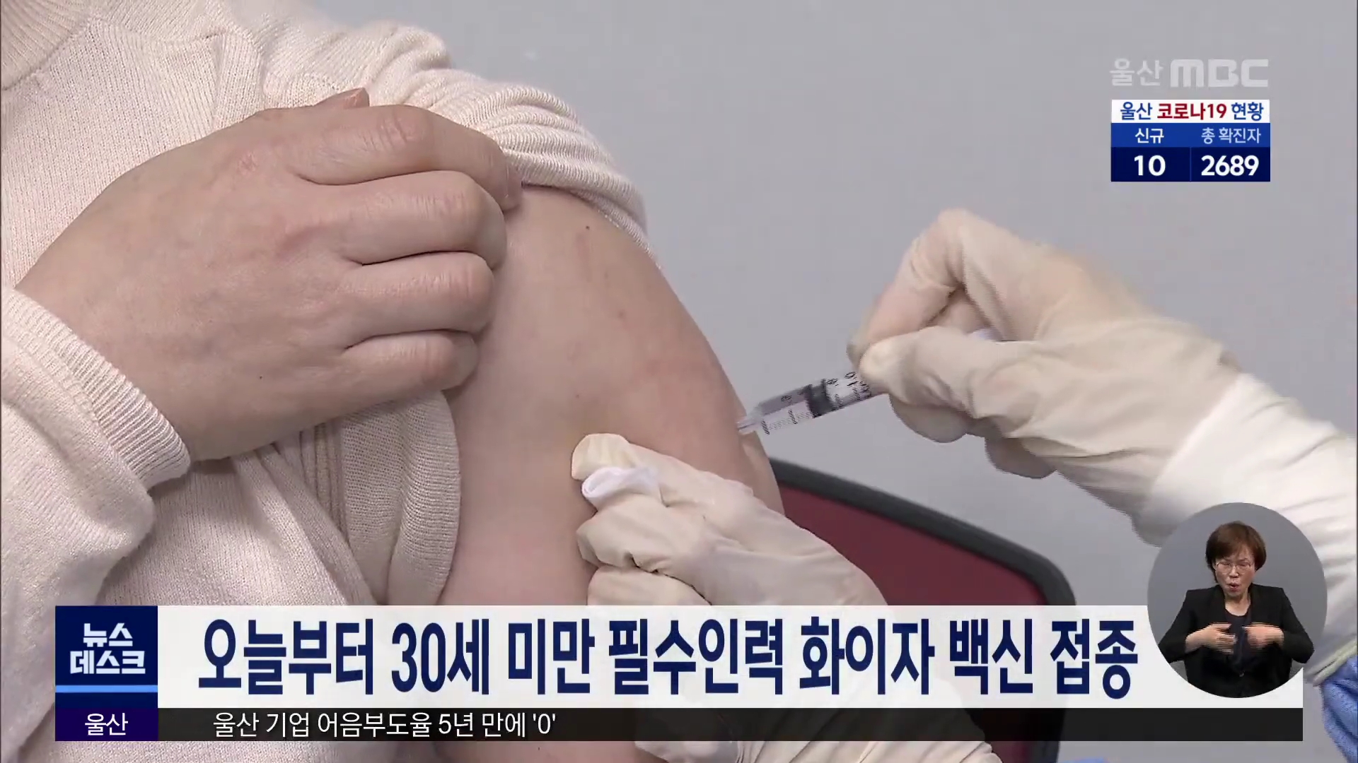 오늘(6/15)부터 노인과 장애인 시설 등의 돌봄 종사자와 경찰, 소방 등 사회필수인력 중 30세 미만에 대해 화이자 백신 접종이 시작됐습니다. 어제(6/14) 기준으로 울산에서는 전 인구의 20.3%인 23만여 명이 1차 접종을 마쳤으며 5.2%인 5만 8천여 명은 백신 접종을 모두 끝냈습니다.//