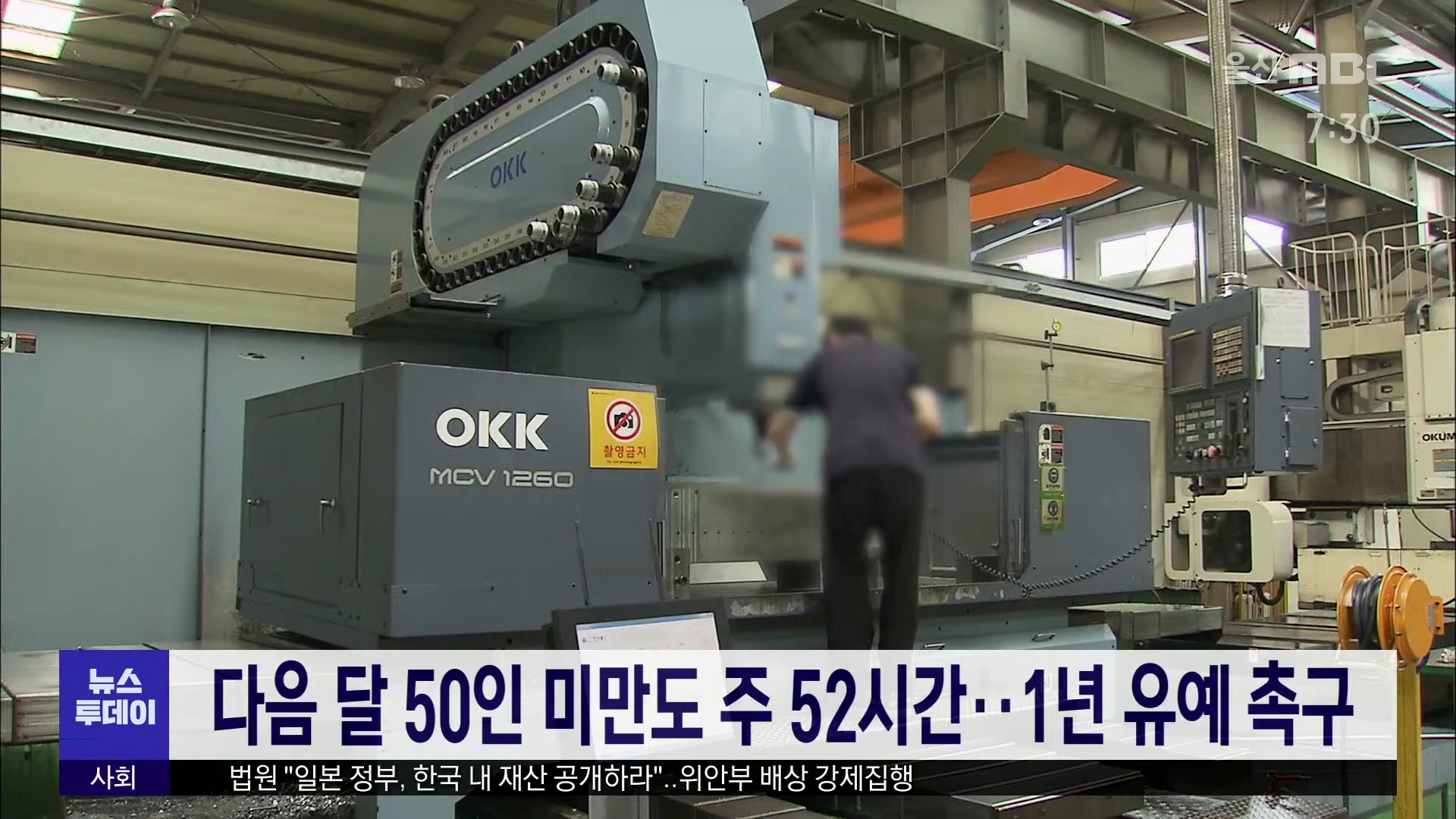 다음달부터 5인 이상 50인 미만 사업장에서도 주52시간 근무제가 적용되자 울산 산업 현장에서는 이를 한시적으로 유예해달라는 목소리가 커지고 있습니다. 코로나19로 매출이 감소된 상황에서 인건비 상승과 구인난까지 겹쳐 회사 운영에 어려움이 예상된다는 것입니다. 이에 울산상공회의소와 중소기업중앙회 등 경제 단...