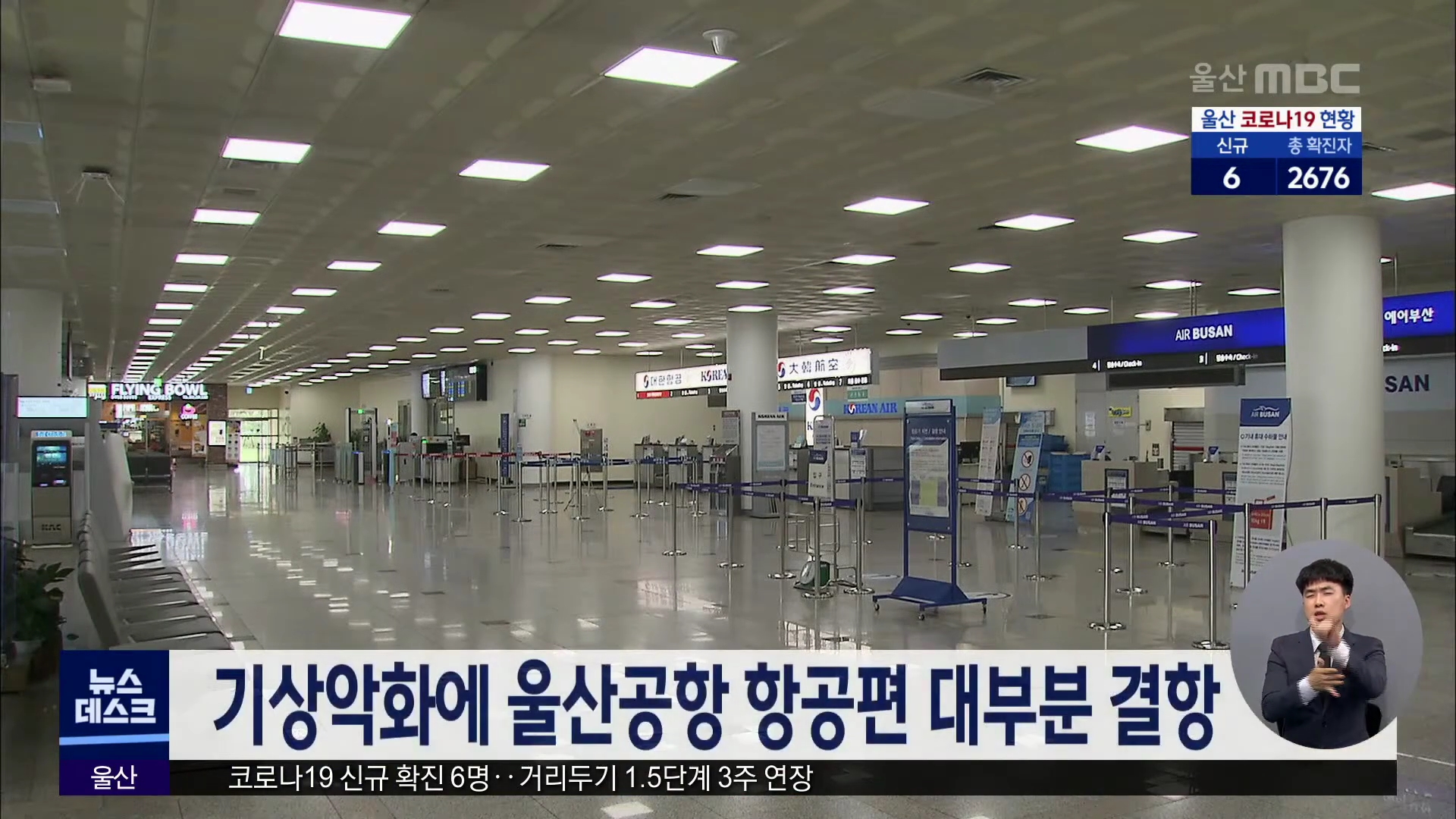 기상 악화로 오늘(6/11) 울산공항의 대부분 항공편이 결항됐습니다. 울산공항은 비와 함께 강한 바람이 불면서 지금까지 출발 15편, 도착 16편의 항공편이 결항됐다고 밝혔습니다. 울산공항은 앞으로 기상 상황을 지켜보며 밤 시간 예정된 항공편의 운항 여부를 결정할 예정이라고 덧붙였습니다.