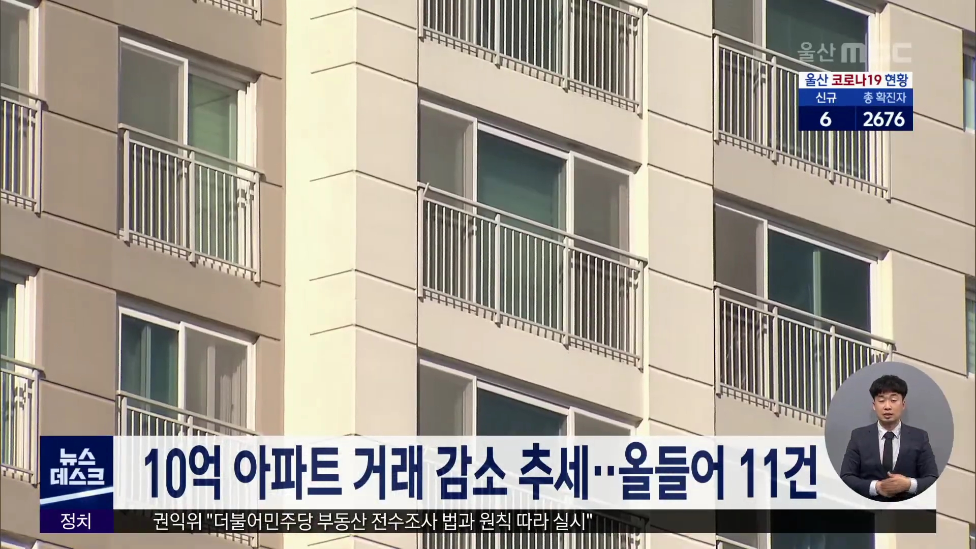 지난해 12월 남구와 중구가 조정대상지역으로 지정된 이후 10억 원 이상 아파트 거래가 크게 감소했습니다. 국토교육부 실거래가 공개시스템을 분석한 결과 올들어 5월까지 10억 원 이상에 거래된 아파트는 11건으로 한 달 평균 2건 정도 거래됐습니다. 남구 신정동이 9곳, 옥동과 우정동이 각각 1건으로 모두 조정대상지역...
