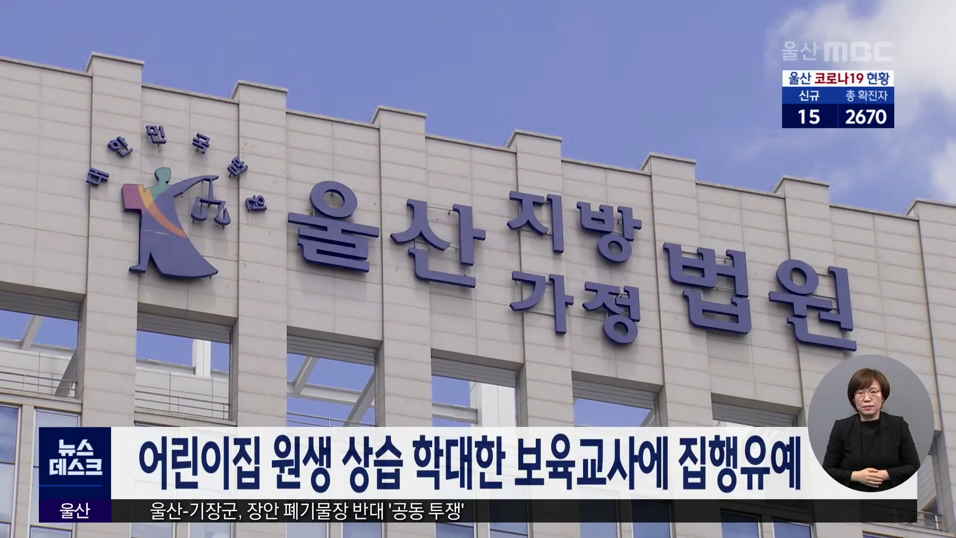 어린이집 원생들을 상습적으로 학대한 보육교사들에게 집행유예가 선고됐습니다. 울산지방법원 정제민 판사는 아동학대 혐의로 기소된 A 보육교사에게 징역 1년에 집행유예 2년, B 보육교사에게는 징역 2년에 집행유예 3년을 선고했습니다. 이들은 지난해 북구의 한 어린이집에서 원생들에게 신체적, 정서적 학대행위를 수...
