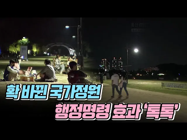◀ANC▶태화강 국가정원에서 사회적 거리두기를 무시한 채 밤마다 술판이 벌어지고 있다는소식 얼마전에 전해드렸는데요.울산시가 지난주부터 밤 10시 이후 이용을전면 금지하는 행정명령을 내렸는데효과는 기대 이상이었습니다.정인곤 기자 ◀END▶ ◀VCR▶밤 9시가 넘은 시간 울산 태화강 국가정원.잔디밭에 사람들이...