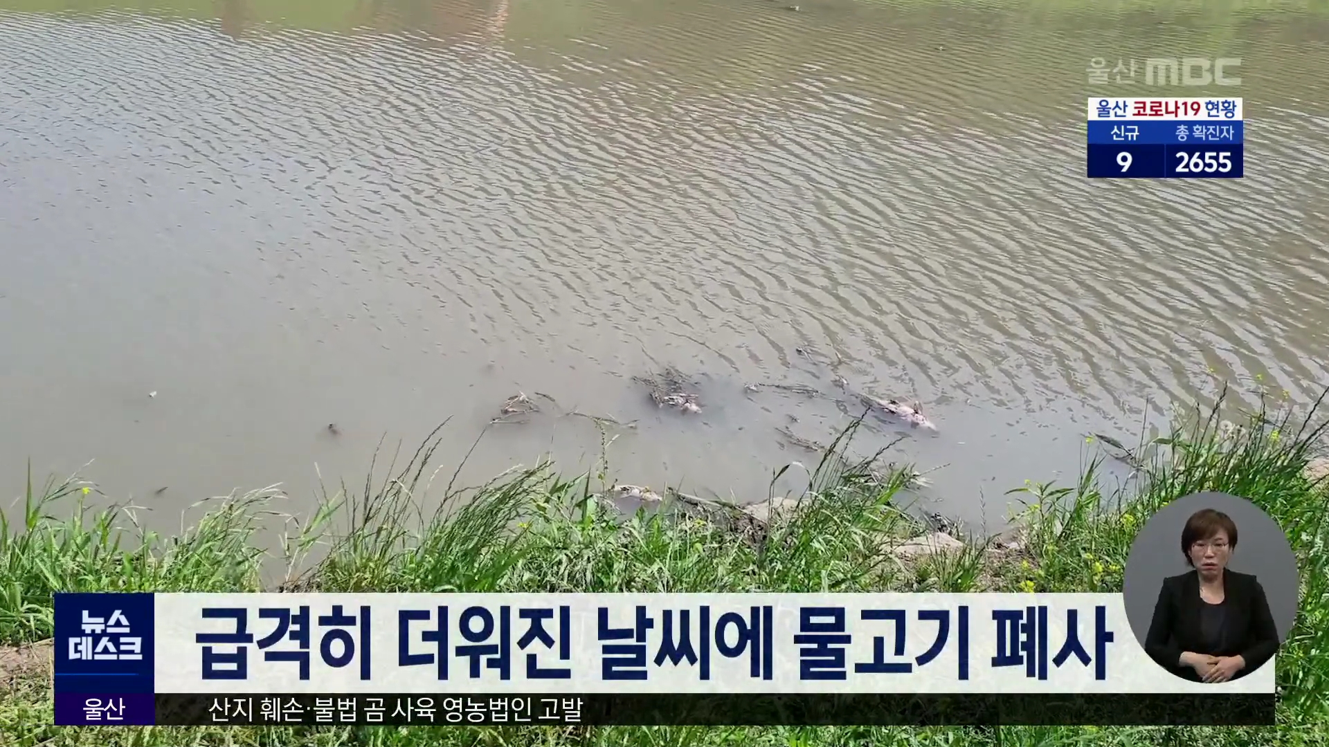 남구 여천천 천변에 물고기가 죽은 채 떠올라 주민들의 민원이 잇따랐습니다. 현장을 확인한 남구청은 여천천의 경우 유속이 빠르지 않아 물 흐름이 느리기때문에 최근 계속된 더위에 수온이 크게 오른 것이 물고기 폐사 원인으로 보인다고 설명했습니다.