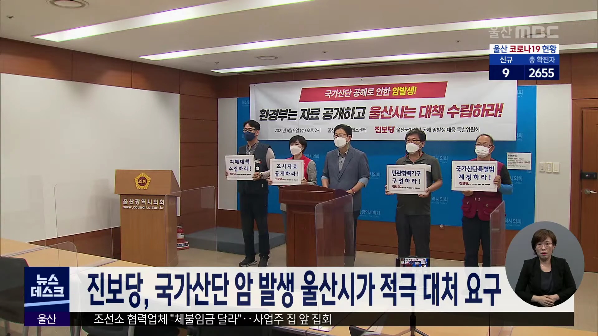울산 국가산업단지 인근 지역의 암 발생 문제를 지적한 울산MBC 보도와 관련해 지역 정치권이 잇따라 대책 마련을 요구하고 있습니다. 진보당 울산시당은 오늘(6/9) 기자회견을 열고, 국가산단을 가동하는 과정에서 울산시민과 노동자의 건강이 희생된 사실이 드러났다며, 이는 국가와 지자체가 기업에게 환경 규제를 지나...