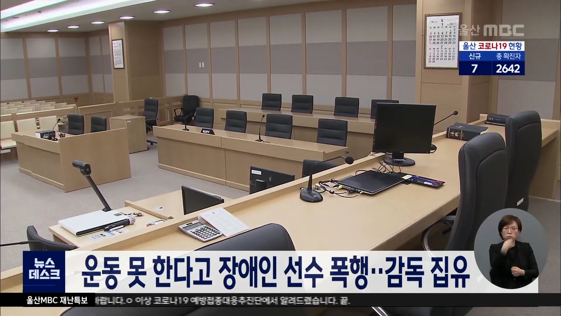 울산지방법원 정한근 판사는 장애인복지법 위반 혐의로 기소된 장애인 체육팀 감독 A씨에게 징역 10개월에 집행유예 2년을 선고했습니다. A씨는 지난 2016년 자신의 팀에 소속된 지적장애 3급 선수가 운동을 잘 하지 못한다는 이유로 얼굴을 때리는 등 여러 차례 폭행한 혐의로 기소됐습니다.//