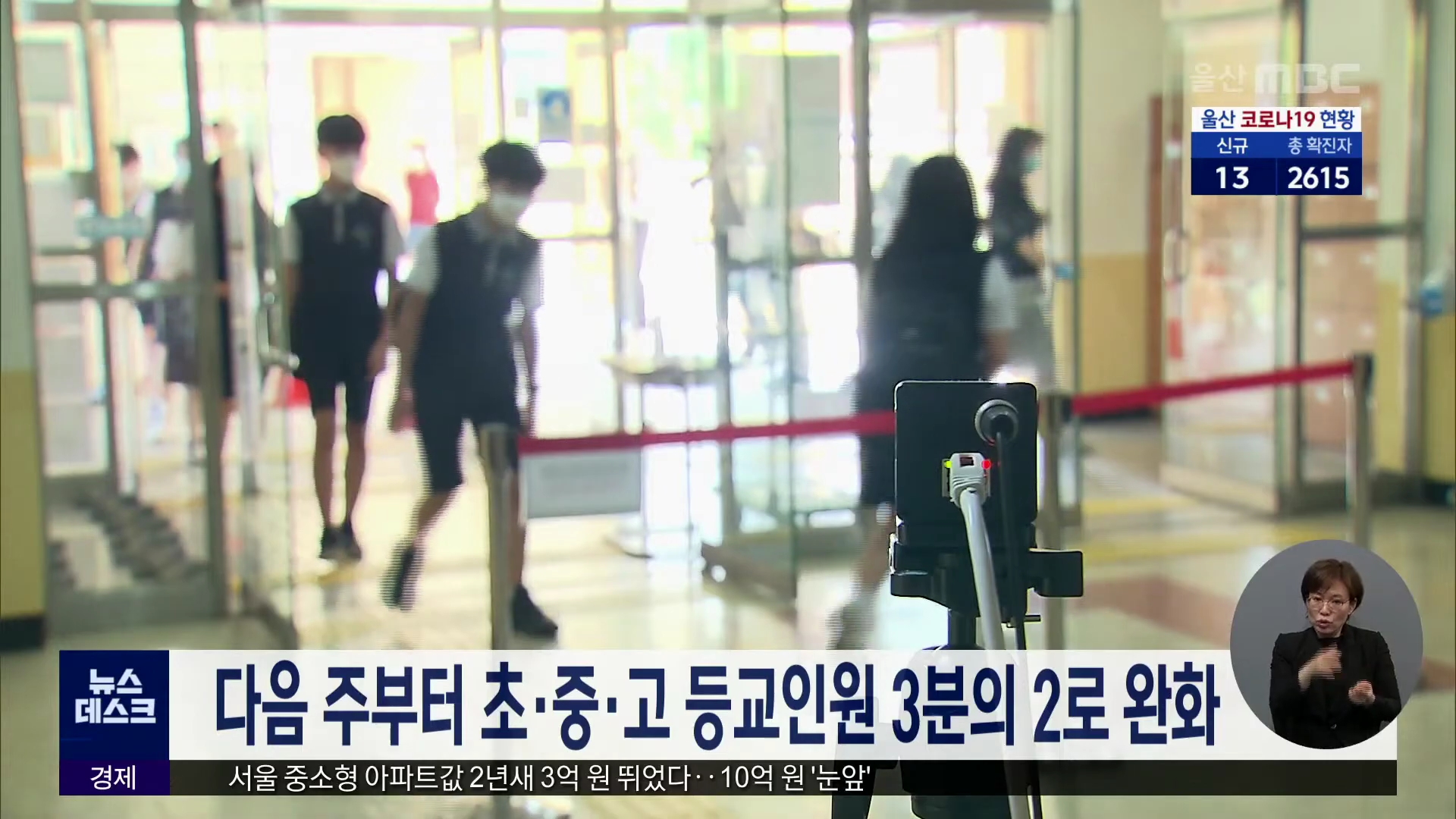 다음주부터 초·중·고 등교인원 3분의 2로 완화