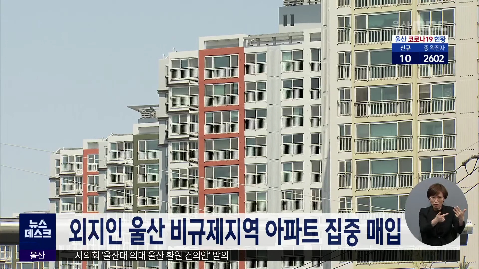 울산 중구와 남구가 규제지역으로 지정된 이후 북·동·울주군 등 비규제지역 아파트를 겨냥한 외지인 수요가 늘어난 것으로 나타났습니다. 한국부동산원에 따르면 올해 1월부터 4월까지 울산 동구와 북구, 울주군 등 비규제지역에서의 외지인 아파트 매입량은 508건으로 지난해 같은기간 330건 대비 54% 증가했습니다. 같은 ...