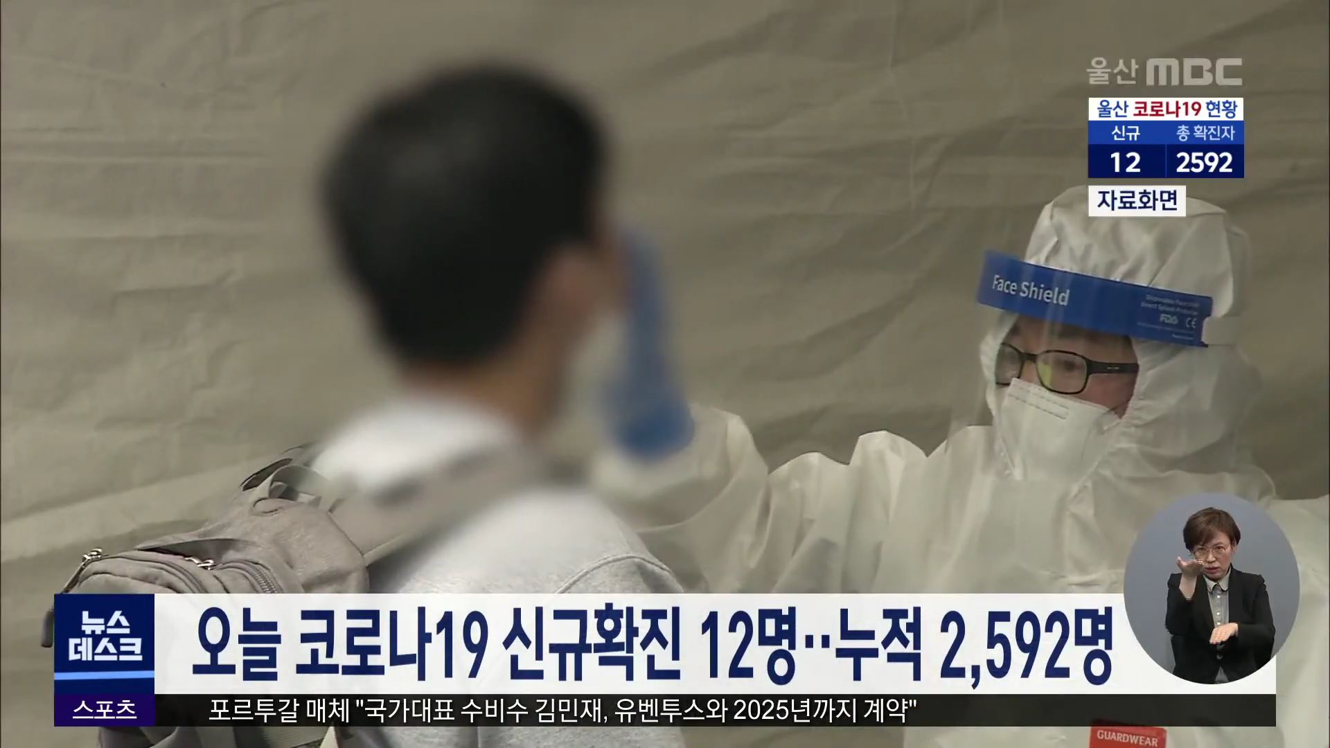 오늘 울산에서는 코로나19 신규 확진자가 12명 발생해 하루 확진자가 다시 두 자리수로 늘었습니다. 이들 중 4명은 기존 확진자의 접촉자나 가족으로 파악됐으며, 4명은 감염 경로가 확인되지 않고 있습니다. 4명은 임시선별검사소를 통해 확진됐으며 이들 중 3명은 기존 확진자의 접촉자로 드러났습니다. 현재까지 울산지...