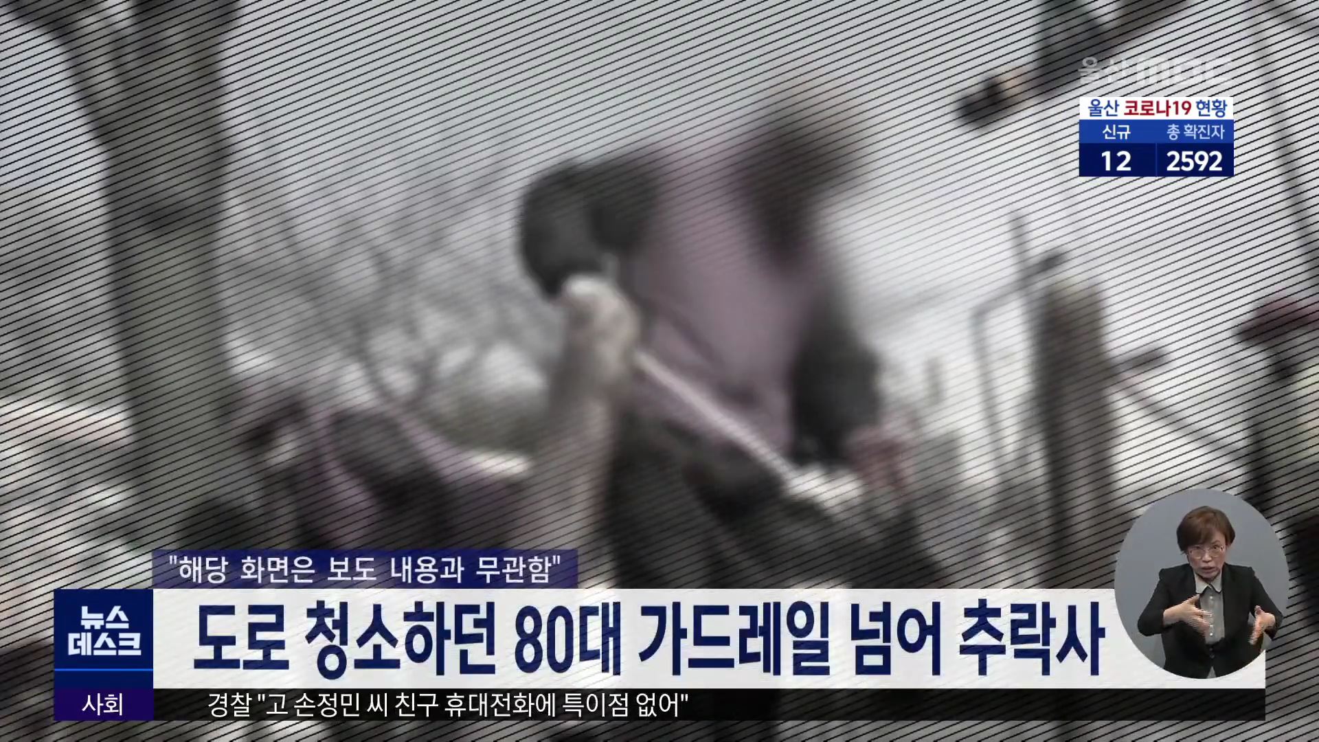 오늘(6/1) 오전 8시 5분쯤 울주군 웅촌면 고연리의 한 도로에서 80대 A씨가 쓰레기를 줍다 가드레일 너머 5m 아래로 추락해 숨졌습니다. A씨는 울주군 노인일자리사업 환경미화업무 참여자로 알려졌습니다. 경찰은 동료 작업자 등을 상대로 사고 발생 경위를 조사하고 있습니다. //