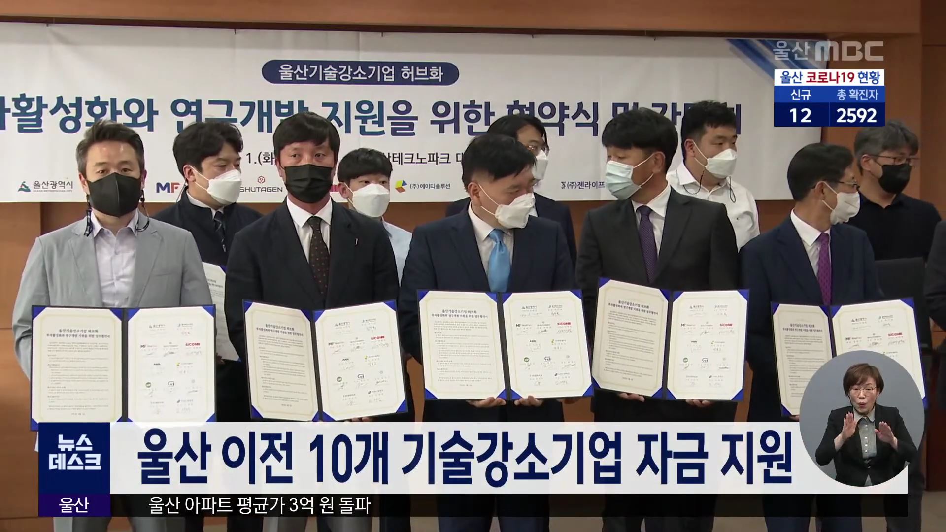 울산으로 본사 등을 이전한 기술강소기업들에게 연구개발 자금이 지원됩니다. 울산시는 오늘(6/1) 본사 또는 공장, 기업부설연구소를 울산으로 이전하거나 이전할 예정인 10개 기업과 양해각서를 체결해 기업당 최대 8천 만원을 지원하기로 했습니다. 이 기업들 가운데 바이오헬스 기업인 슈타겐과 첨단소재 기업인 메탈페...