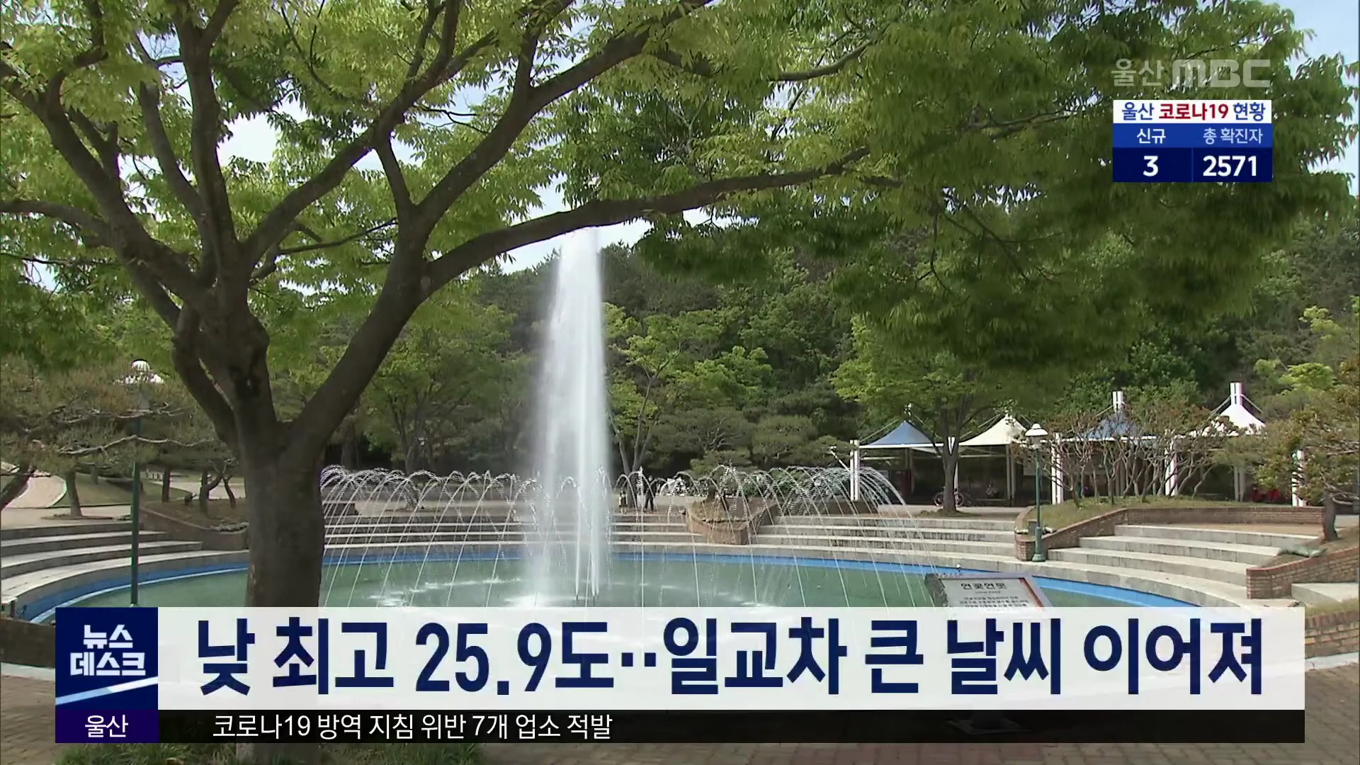 토요일인 오늘(5/29) 울산지방은 가끔 구름 많은 가운데 낮 최고 기온이 25.9도를 기록해 더웠습니다. 내일은 맑은 날씨 속에 아침 최저 14도, 낮 최고 25도의 오늘과 비슷한 기온분포가 예상됩니다. 울산기상대는 당분간 맑고 일교차 큰 날씨가 이어지겠다고 예보했습니다.