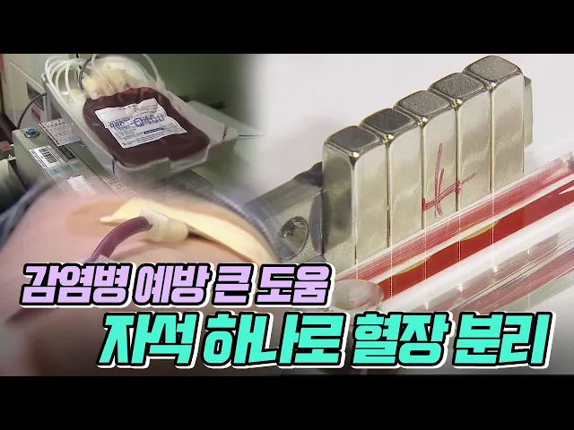 ◀ 앵 커 ▶ 몸에 이상이 생기면 보통 혈액검사를 먼저 합니다. 질병 여부를 확인하기 위해서는 이 혈액에서 혈장을 분리해 내야하는데요, 국내 연구진이 자석 하나로 100% 깨끗한 혈장만을 분리하는 신기술을 개발했는데 코로나19같은 감염병 예방에 큰 도움이 될 것으로 기대되고 있습니다. 홍상순 기잡니다. ◀ 리포트 ▶ 피...