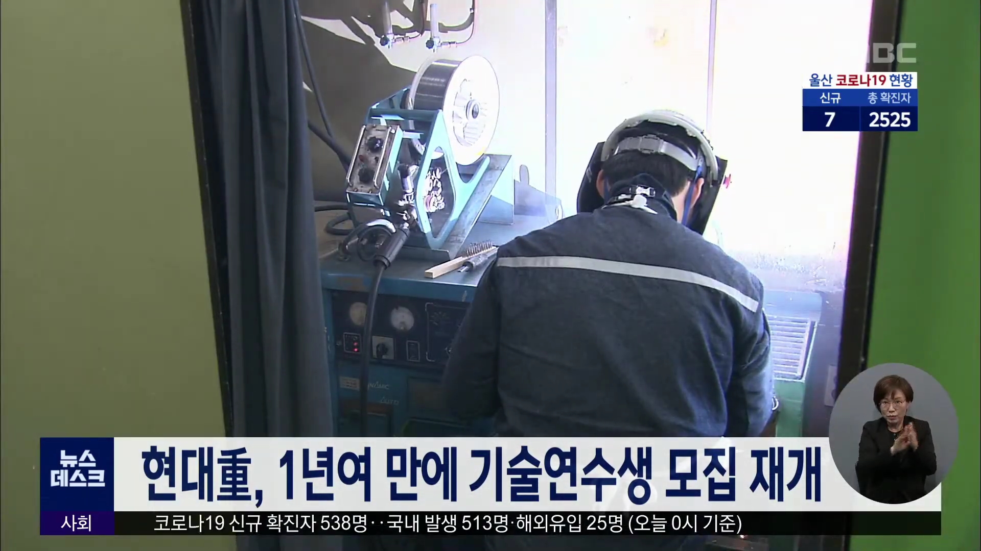 조선 기술인력을 육성하는 현대중공업 기술교육원이 약 1년만에 기술연수생 모집을 재개합니다. 현대중공업은 이번달부터 오는 7월 말까지 용접과 도장 등 선체조립과 전기와 배관 등 선박의장 2개 직종에 모두 100여명을 모집할 예정입니다. 기술 인력 모집은 향후 선박 건조 물량 증가에 대비해 기술인력을 충원하기 위한...