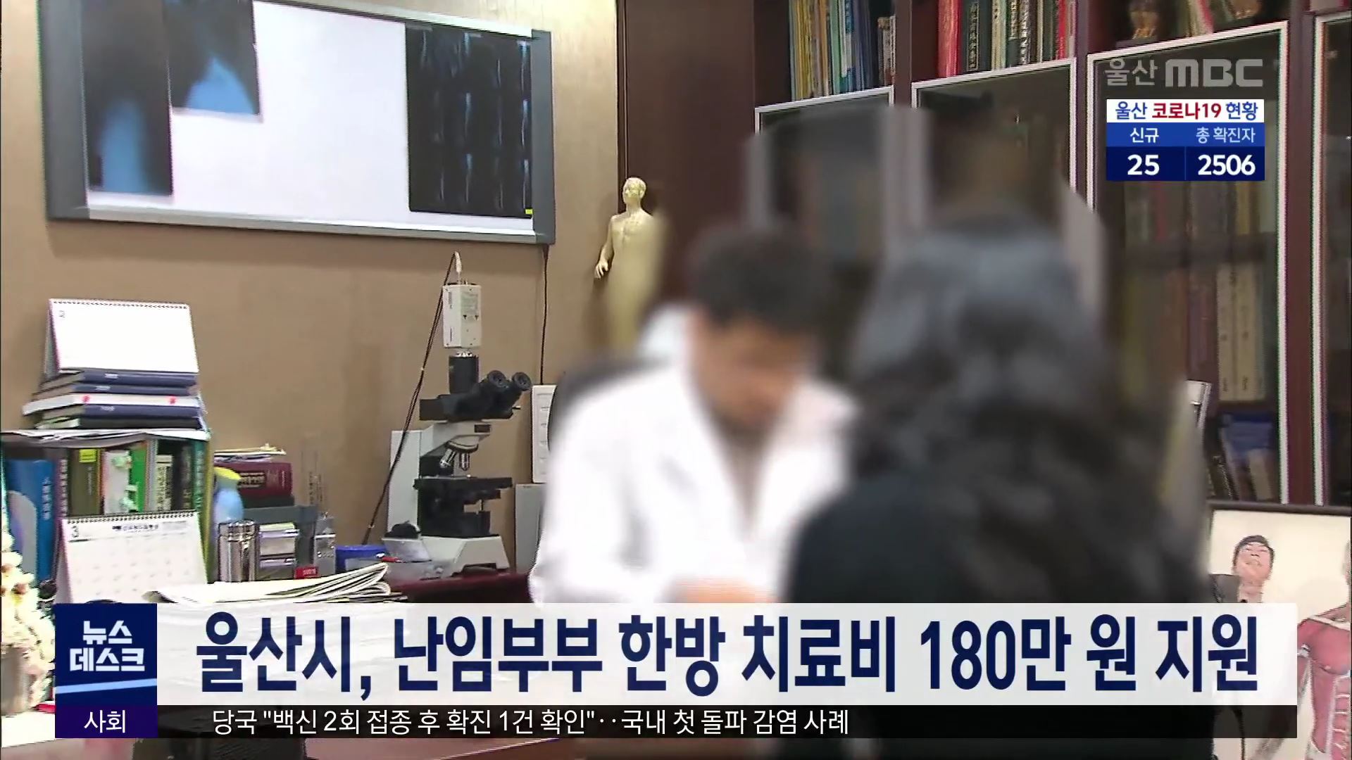울산시가 난임부부를 위한 한방 치료비를 지원합니다. 신청 대상자는 신청일 기준 6개월 전부터 울산에 주민등록을 두고 거주하면서 1년 이상 난임이 지속된 만 44세 이하 여성이면 소득과 상관없이 누구나 신청이 가능합니다. 대상자로 선정되면 180만원 상당의 한의원 한약과 침구치료 등의 지원을 받게 됩니다.//