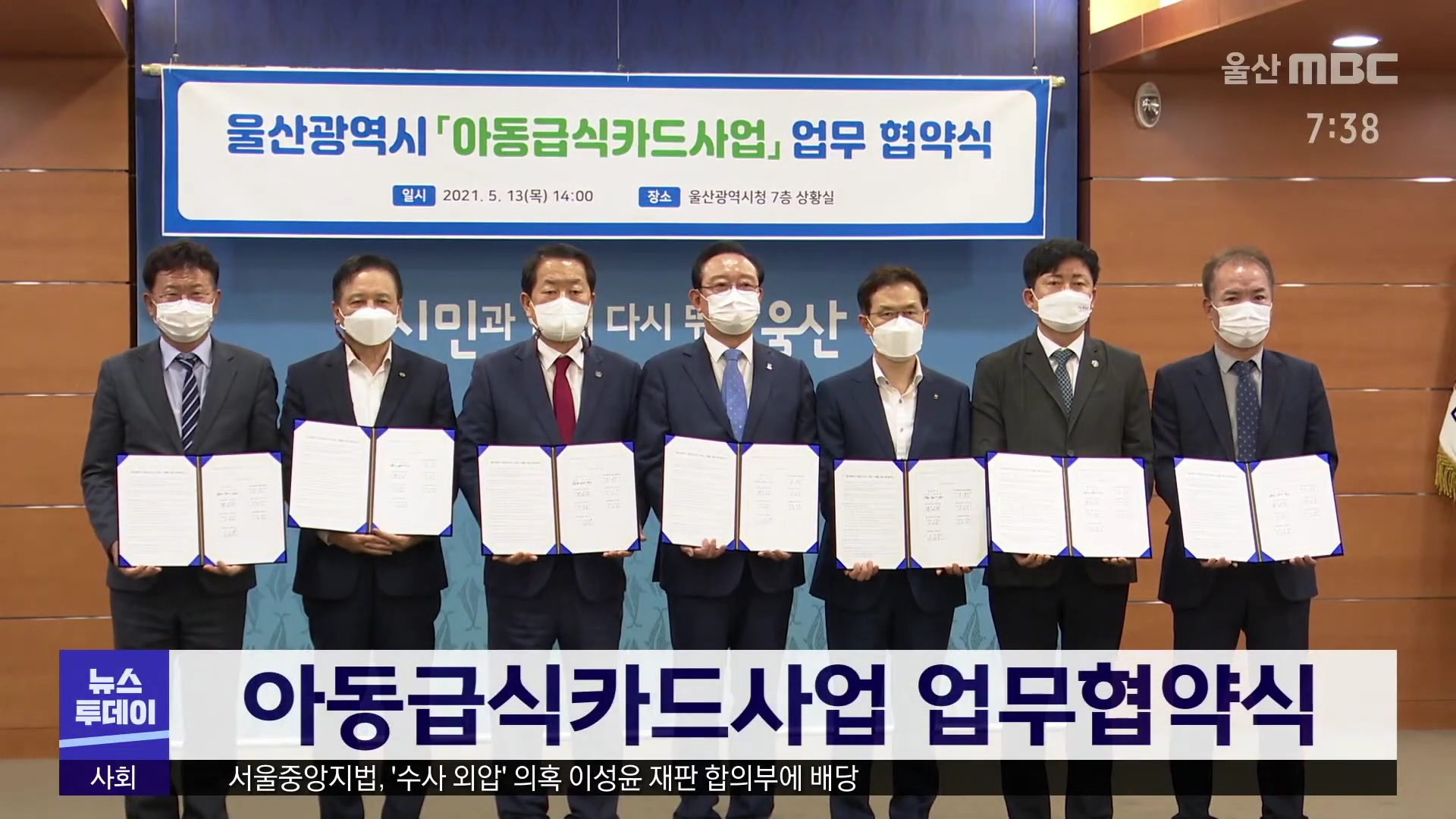 울산지역 결식아동 급식지원을 위한 '아동급식카드사업 업무협약식'이 오늘(5/13) 시청에서 열렸습니다. 결식 우려가 있는 18세 미만의 아동에게 급식카드를 발급하고 이를 급식가맹점에서 사용하면 자치단체에서 정산해주는 사업입니다. 울산시는 결식 아동의 편의를 위해 현재 1천9백 곳인 가맹점을 1만5천 곳까지 대폭 ...