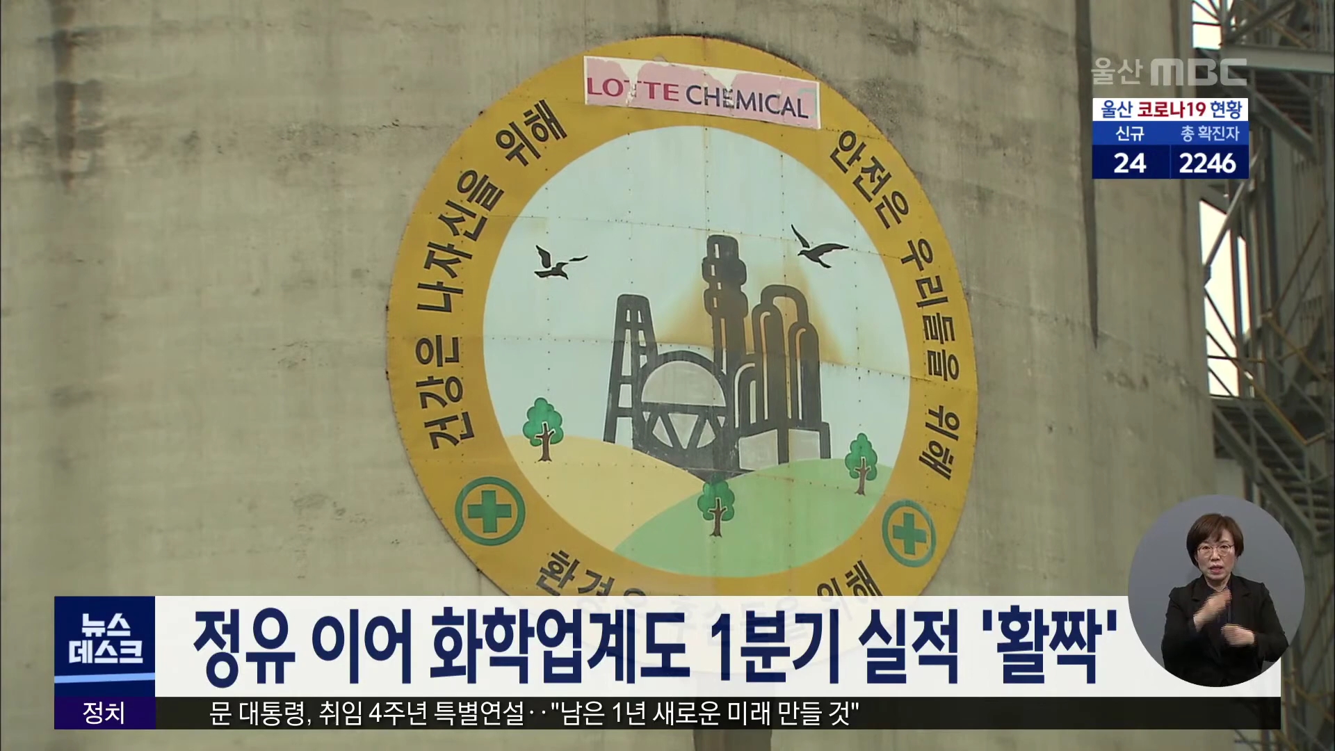 울산지역 정유업계에 이어 화학업계도 주요 제품의 수요 확대 등으로 1분기 좋은 실적을 거뒀습니다. 롯데케미칼은 올해 1분기에 매출은 지난해 같은 기간에 비해 27.3% 늘어난 4조천600억원을 기록했고 연결기준 영업이익은 6천200여억원으로 잠정 집계됐습니다. 금호석유화학도 1분기 매출이 1조8천500여억원, 영업이익 6...