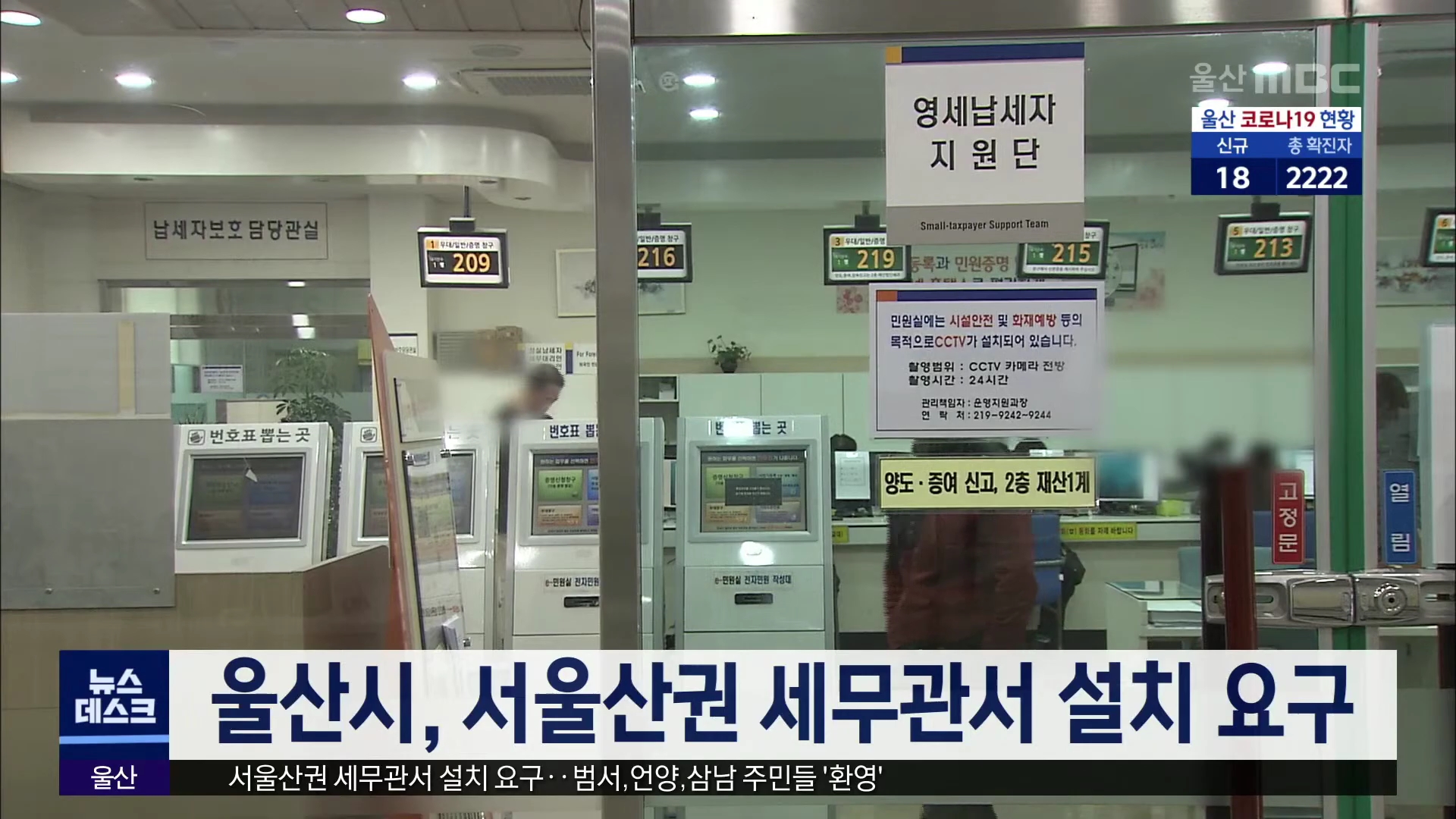 울산시가 정부에 서울산권 세무관서 설치를 요구했습니다. 울주군 범서와 언양, 삼남 등 서울산 주민들은 북구에 있는 동울산세무소가 관할이여서 먼 거리를 오가며 불편을 겪고 있다고 밝혔습니다. 시는 KTX 울산역세권과 선바위 지구 개발에 따른 인구 유입에 대비해 하루빨리 서울산권 세무관서가 설치돼야 한다는 입장...