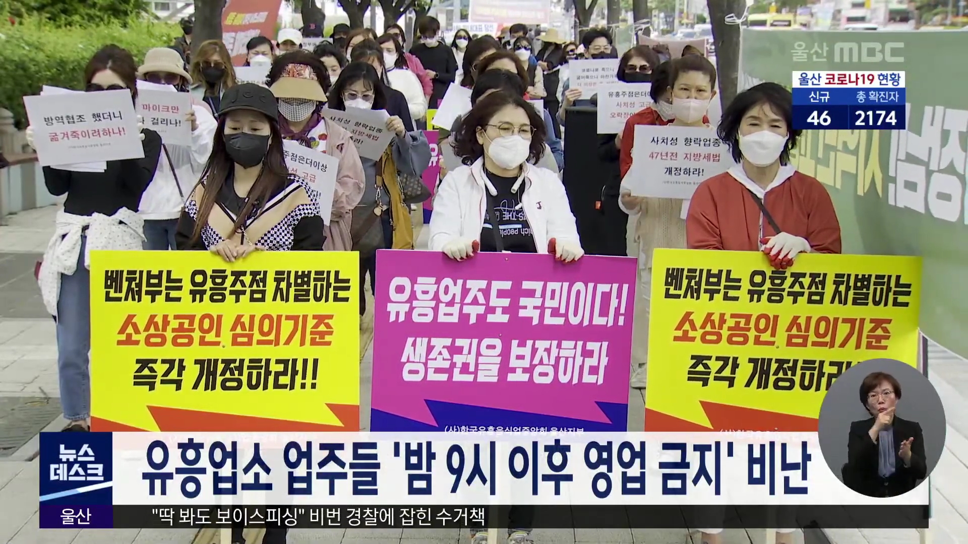 울산지역 유흥업소 업주들이 오늘(5/7) 시청 앞에서 기자회견을 열고 밤 9시 이후 영업 금지 조치와 관련해 울산시에 대책마련을 촉구했습니다. 이들은 1년 넘도록 강제휴업 명령으로 영업을 못했는데 또 다시 아무런 보상 없이 영업을 금지하는 건 불공정한 정책이라고 비난했습니다. 또한 밤 9시 이후 버젓이 영업을 하고...