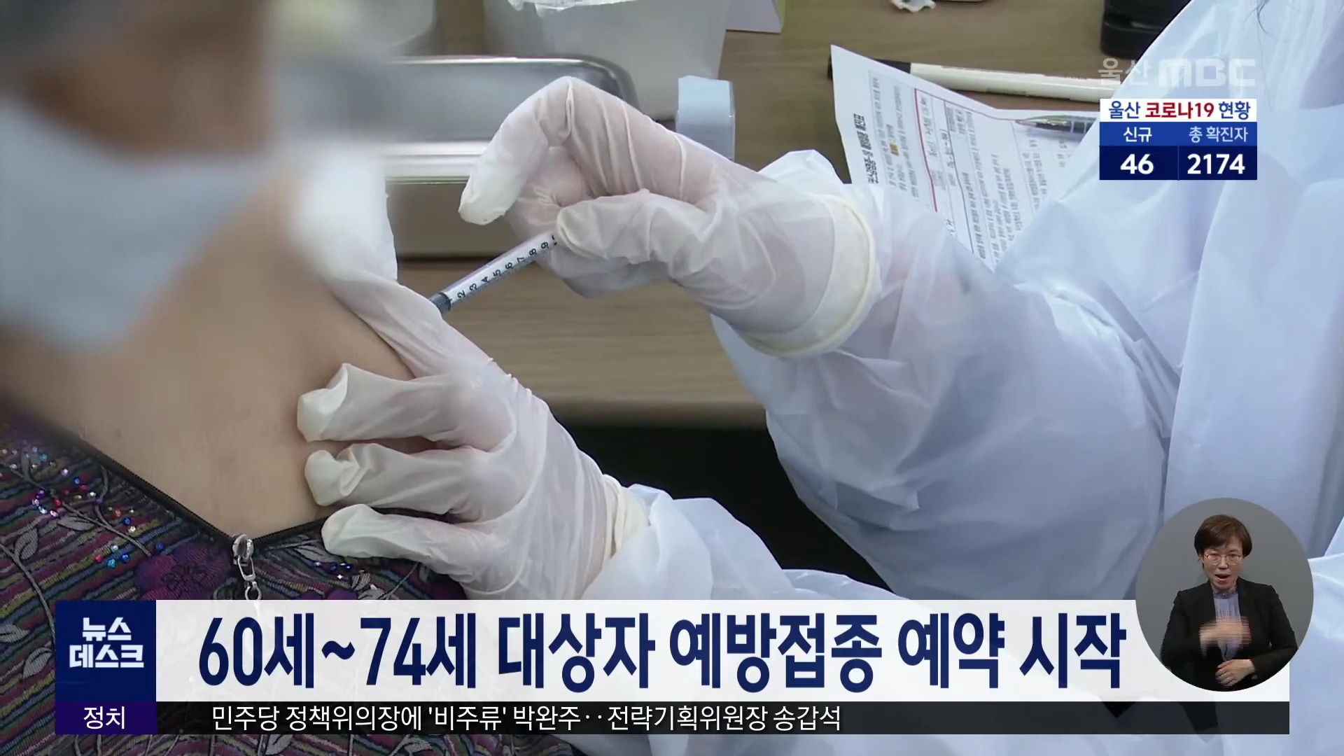 울산시는 다음달 3일까지 60세에서 74세 어르신을 대상으로 코로나19 예방접종 사전 예약을 받습니다. 예방접종 예약은 인터넷 사전예약 홈페이지를 통하거나 질병관리청 전화 1339번, 보건복지부 전화 129번 등을 통해서도 가능하며 본인이 직접하거나 보호자가 대리 예약도 가능합니다. 한편 예약 첫날인 어제(5/6) 전체 ...