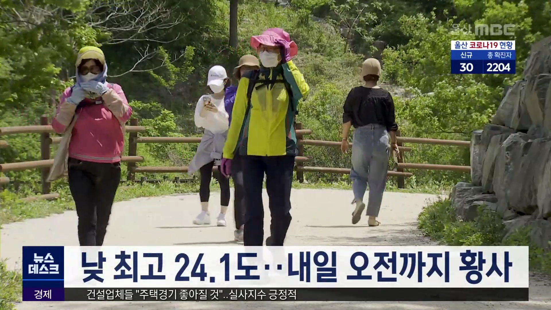 주말인 오늘(5/8) 울산지방은 대체로 맑은 가운데 아침 최저 기온이 8.7도에 머물렀지만 낮 최고 기온은 24.1도까지 올라가 일교차가 매우 큰 날씨를 보였습니다. 울산 하늘을 뒤덮은 황사로 인해 미세먼지 농도는 종일 나쁨 수준을 보였고, 내일 오전까지 황사의 영향이 이어질 것으로 전망됩니다. 휴일인 내일은 대체로 ...