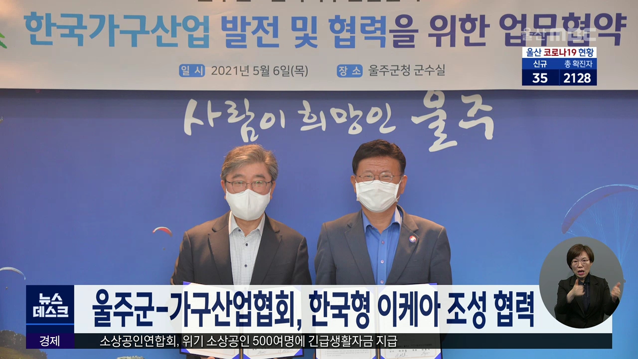 지난 3월 한국형 이케아를 조성하겠다고 밝힌 울주군이 오늘(5/6) 한국가구산업협회와 업무협약을 맺었습니다. 두 기관은 산업과 물류, 교육 등 가구산업 인프라 구축에 공동협력하고 대기업과 중소기업의 상생협력, 해외 유턴 기업의 울산 유치를 위해 협력하기로 했습니다. 울주군은 두동이나 두서 등에 가구 목재 산업단...
