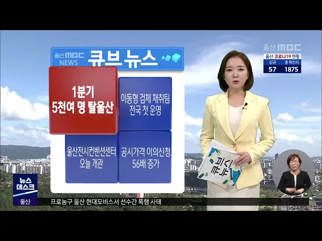 올해 1분기에 울산인구가 또 5천여명 줄었습니다.통계청이 밝힌 '1분기 국내 인구이동 통계'를 보면울산은 3만8천700여명이 전입하고4만4천200여명이 전출해 5천400여명이 순유출됐습니다.순유출은 청소년과 20,30대 청년들이 많아대학 진학과 일자리를 찾아울산을 떠나는 것으로 분석됩니다.세종과 경기의 인구 증가가 두...