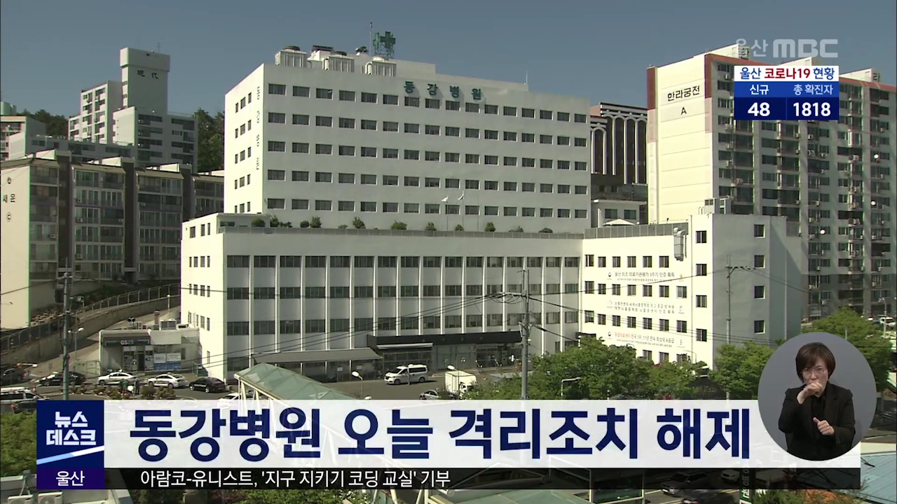 중구 동강병원이 코로나19 감염 확산을 막기 위한 동일집단 격리조치에서 해제됐습니다. 울산시는 동강병원 10층과 11층에 머물고 있는 환자와 종사자 등 75명에 대한 최종 검사에서 모두 음성이 나왔다고 밝혔습니다. 지난 14일 동강병원에서 확진환자가 잇따라 나오자 지난 14일부터 2주 동안 격리조치가 내려졌습니다. /...