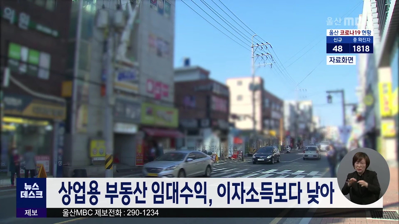 상업용 부동산을 빌려주고 받는 소득이 은행 예금이자보다 낮은 것으로 나타났습니다. 한국부동산원이 밝힌 2021년 1분기 상업용부동산임대동향를 보면 울산지역 오피스 투자수익률은 2.1%로 그나마 나았고 중대형 상가는 1.51%, 소규모 상가는 1.42%, 집합상가는 1.44%에 불과해 은행 예금이자보다 낮았습니다. 특히 울산...