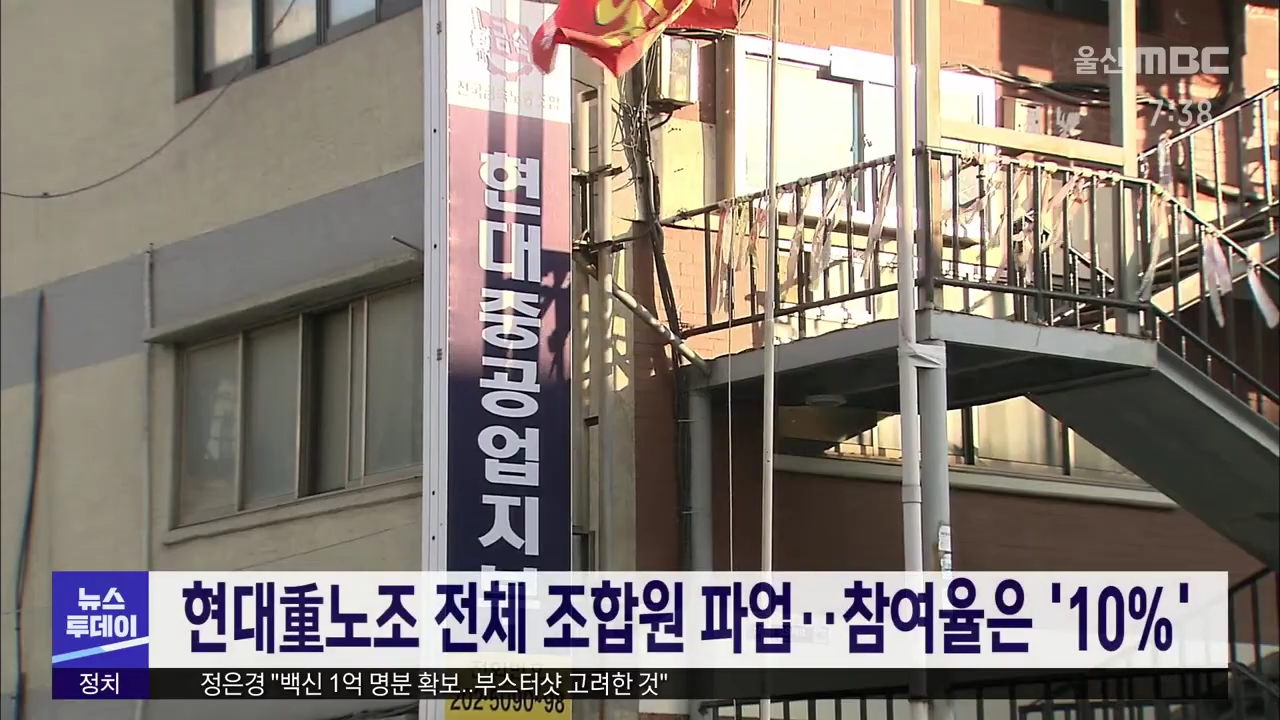 지난 23일 임단협 재개를 요구하며 현대중공업 노조가 벌인 전체 조합원 부분 파업에 상당수 조합원이 참석하지 않은 것으로 확인됐습니다. 노조가 지난 20일부터 나흘동안 전체 조합원 4시간 부분파업 지침을 내렸지만 전체 7천 여명 가운데 10% 정도만 참석해 노조 안의 갈등이 표출된 것이라는 해석이 나오고 있습니다. ...