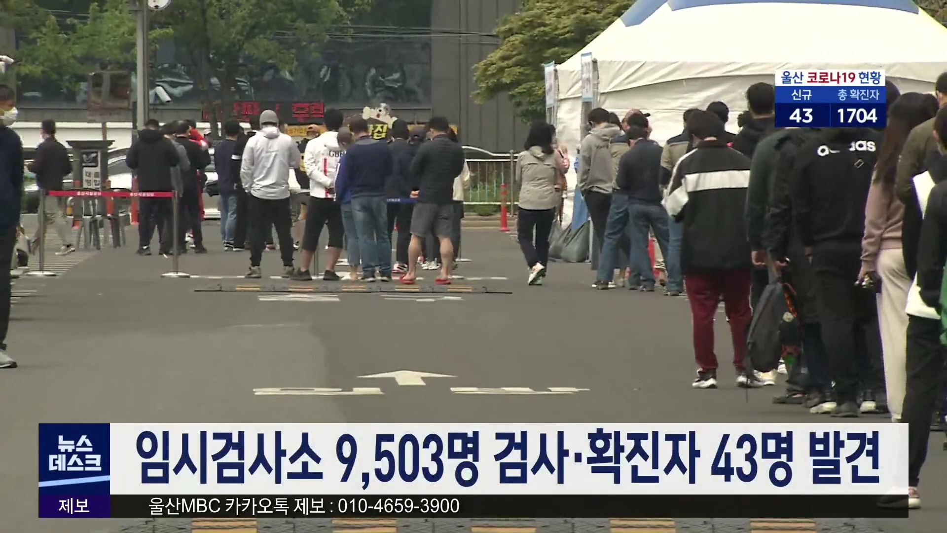 울산시가 이번 주부터 운영중인 코로나19 임시선별검사소에서 한 주 동안 모두 9천 503명이 검사를 받은 것으로 집계됐습니다. 이들 중 확진자는 43명 발견됐으며 역학조사 결과 기존 확진자와 접촉한 이력이 있는 경우가 대다수인 것으로 파악됐습니다. 코로나19 임시선별검사소는 중구 동천체육관과 남구 문수경기장, 울...
